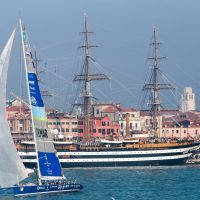 La testa della regata, però, cambia presto cambiato padrone. A Maxi Jena è, infatti, bastato un po’ di vento nel canale d’ingresso in bocca di porto per recuperare e sviluppare tutta la sua potenza e mettere la sua prua davanti a tutti. Vento che è improvvisamente calato dopo il secondo cancello, davanti all’isola di Sant’Andrea quando i primi maxi yacht si affacciavano in Bacino di San Marco. Per la barca di Kosmina rallentare l’andatura non ha compromesso il primo posto conservato fino all’arrivo davanti a piazza San Marco raggiunto dopo circa un’ora e mezzo di gara. Dietro battaglia per il secondo posto con l’altra barca slovena, Adriatic Europa di Misic Gaspar che ha prima superato Pendragon, in difficoltà nel passaggio della boa davanti al Lido di Venezia, lungo il canale d’ingresso della bocca di porto e quindi raggiunto e lasciato dietro anche Anywave Safilens del Sistiana Sailing. Quarto posto per Pedragon, la barca di Fabio Sacco, socio della Compagnia della Vela.