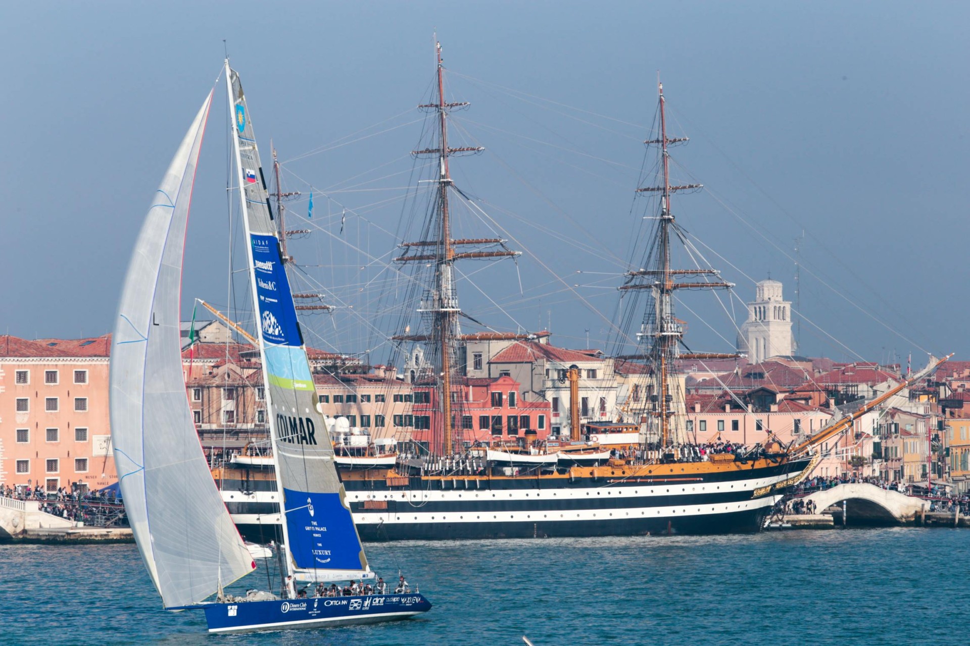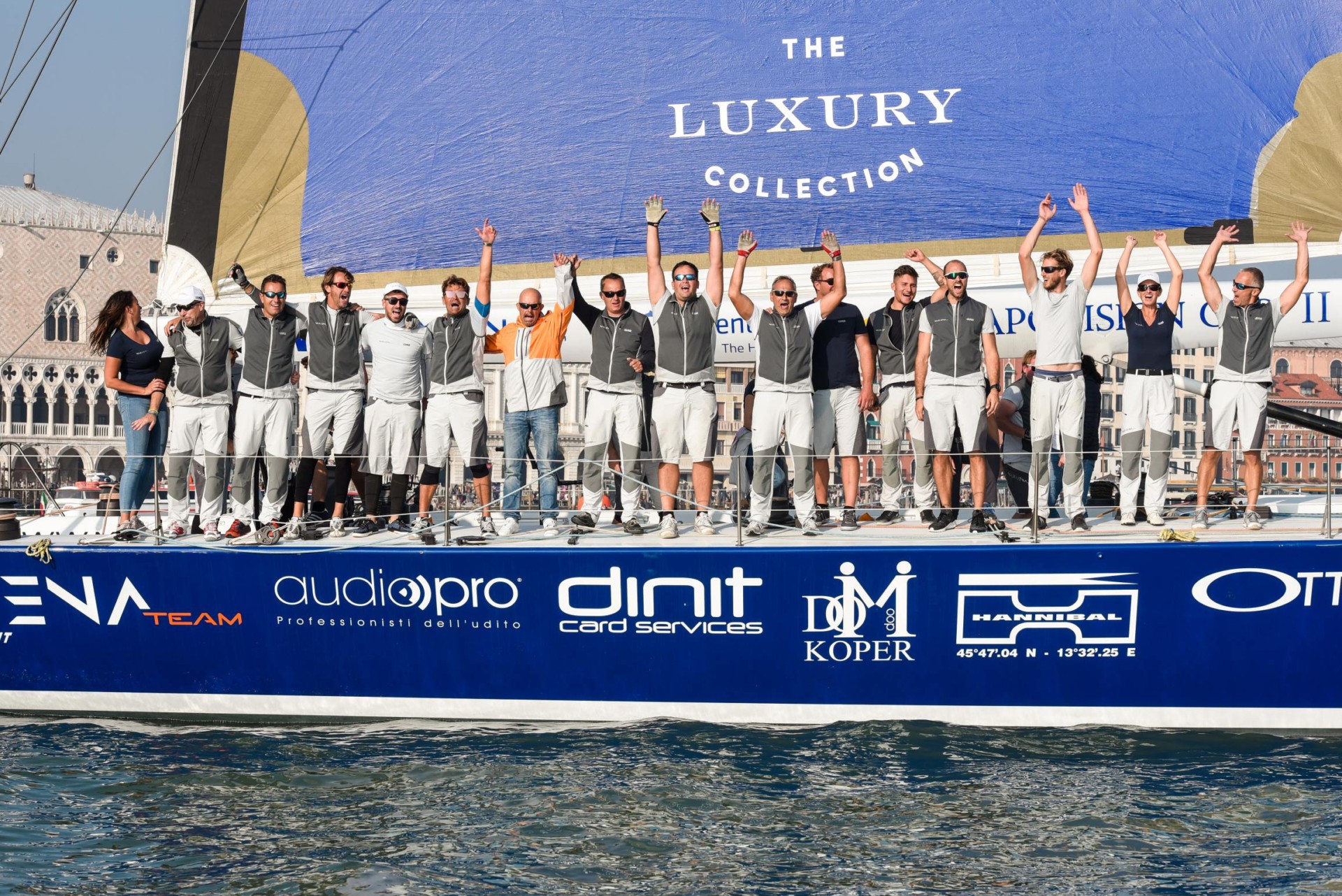 La testa della regata, però, cambia presto cambiato padrone. A Maxi Jena è, infatti, bastato un po’ di vento nel canale d’ingresso in bocca di porto per recuperare e sviluppare tutta la sua potenza e mettere la sua prua davanti a tutti. Vento che è improvvisamente calato dopo il secondo cancello, davanti all’isola di Sant’Andrea quando i primi maxi yacht si affacciavano in Bacino di San Marco. Per la barca di Kosmina rallentare l’andatura non ha compromesso il primo posto conservato fino all’arrivo davanti a piazza San Marco raggiunto dopo circa un’ora e mezzo di gara. Dietro battaglia per il secondo posto con l’altra barca slovena, Adriatic Europa di Misic Gaspar che ha prima superato Pendragon, in difficoltà nel passaggio della boa davanti al Lido di Venezia, lungo il canale d’ingresso della bocca di porto e quindi raggiunto e lasciato dietro anche Anywave Safilens del Sistiana Sailing. Quarto posto per Pedragon, la barca di Fabio Sacco, socio della Compagnia della Vela.